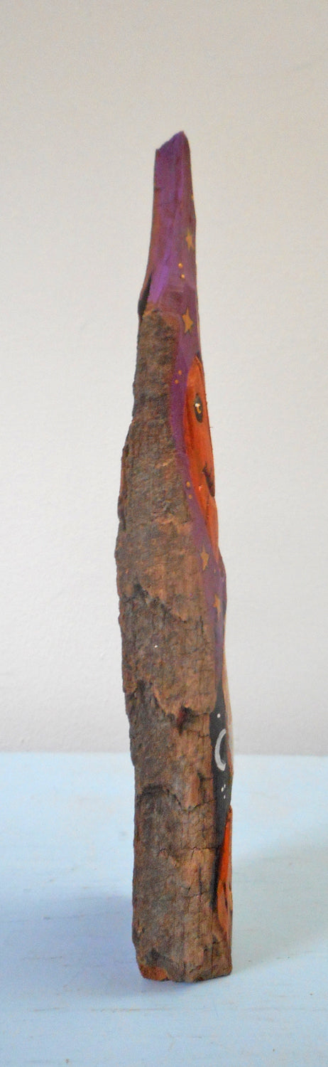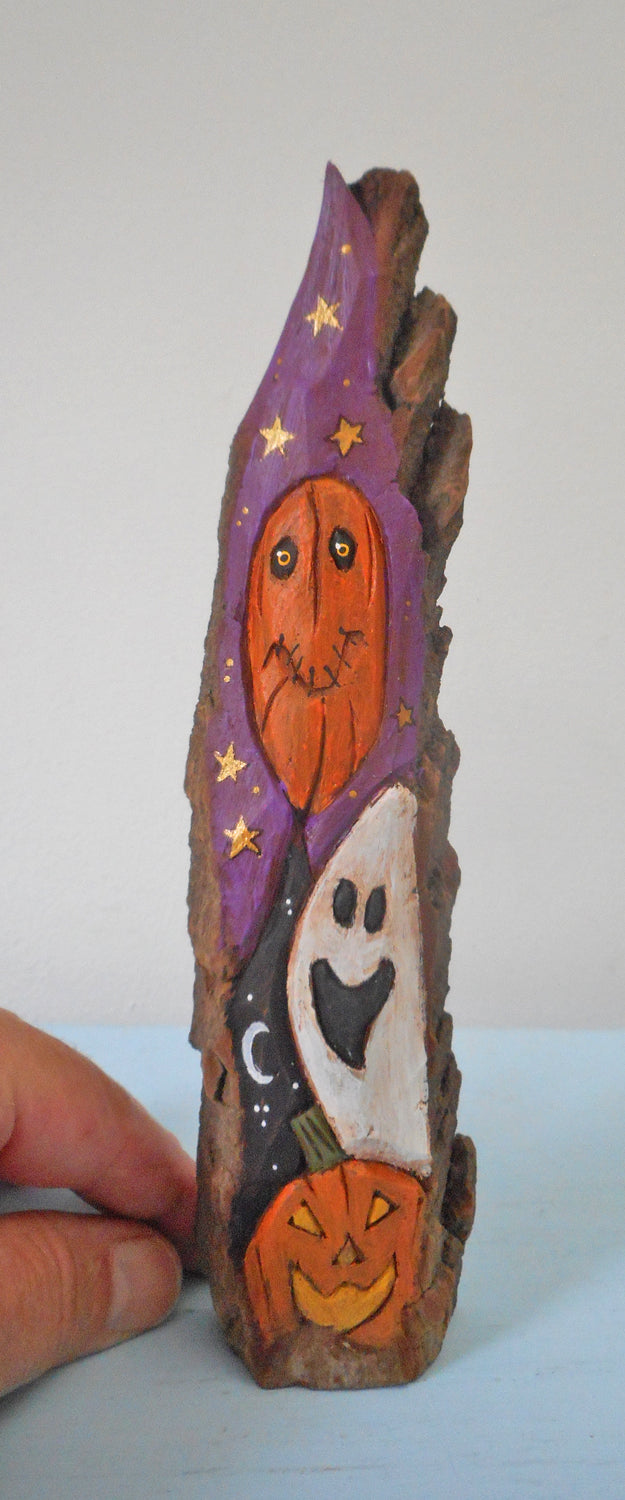 This Halloween decoration is exquisitely crafted and a unique gift idea. It is hand carved from cottonwood and painted in acrylic. Ideal for the wall or shelf.