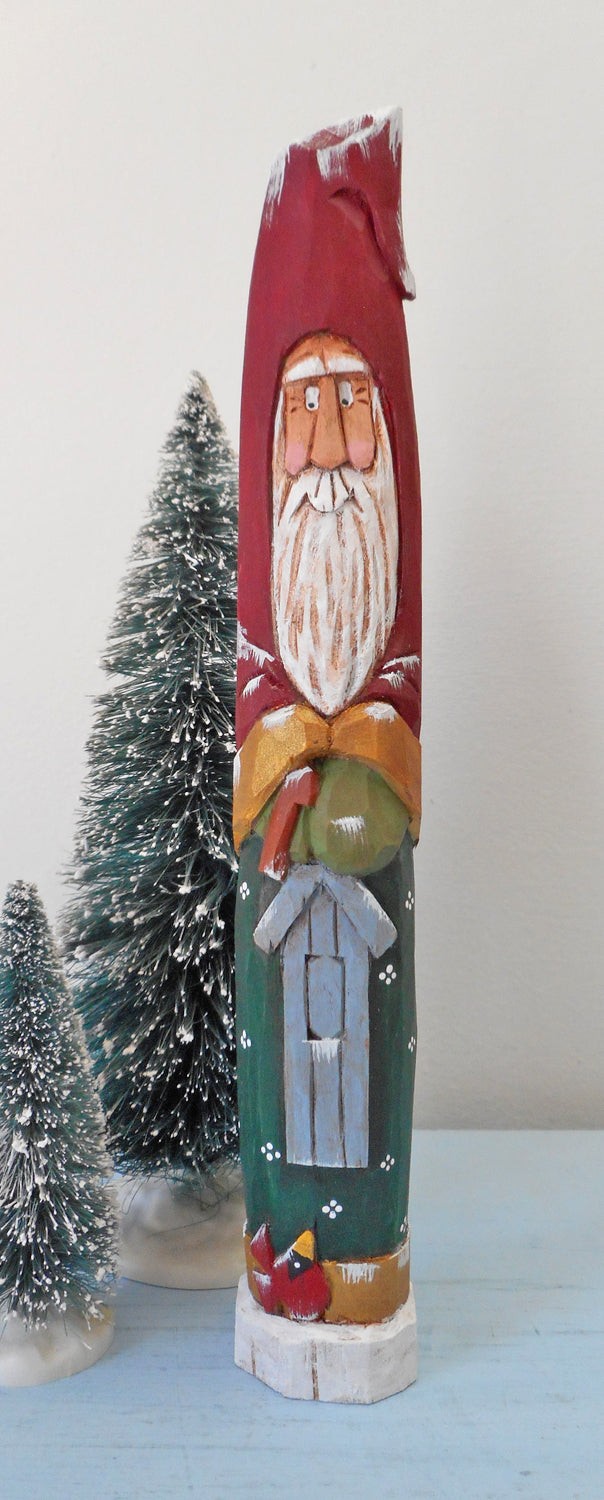 stocking. In Santas arms you will find a Birdhouse and a Cardinal
