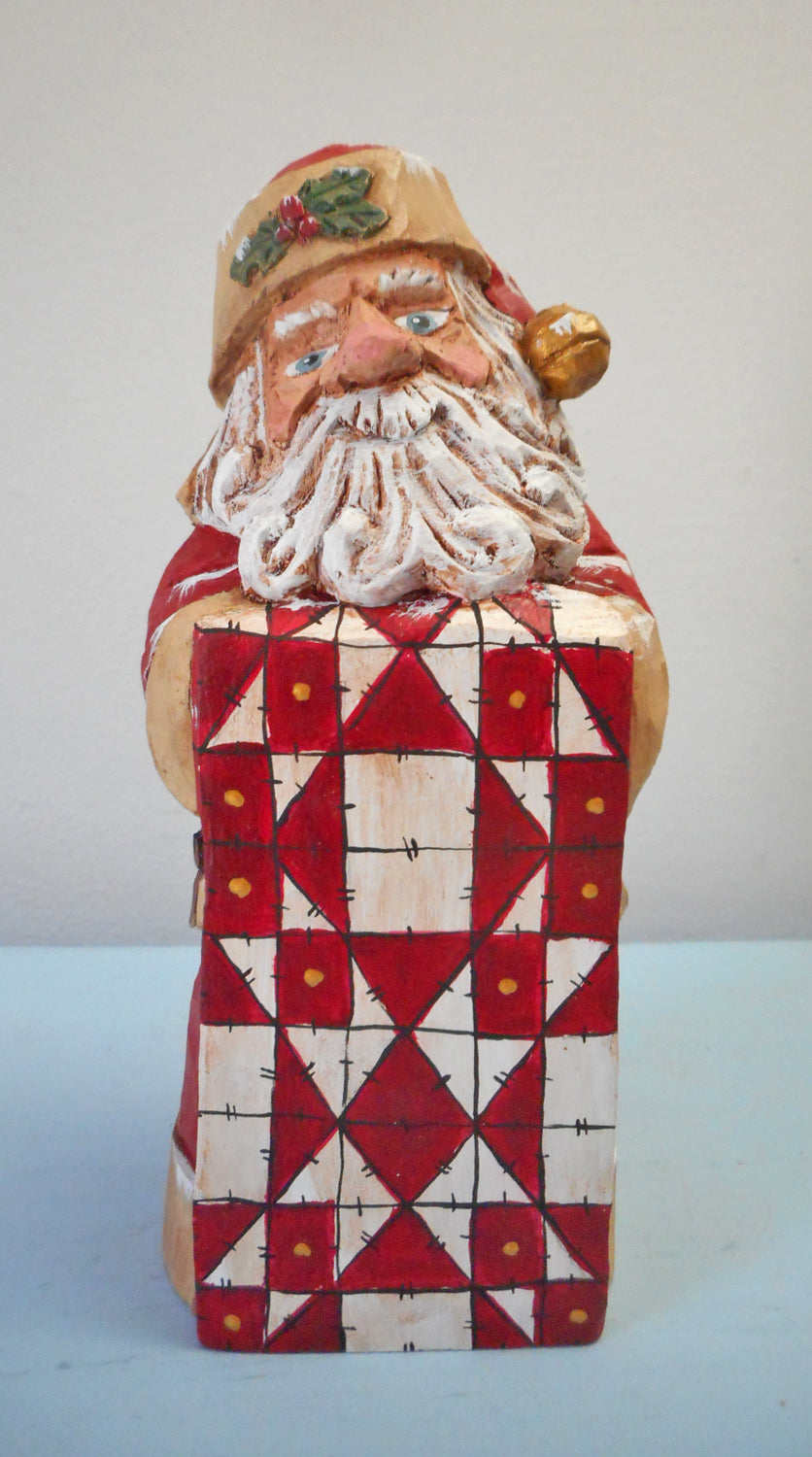 If you are looking for truly a unique gift this hand carved Santa Claus with barn quilt carving is the ideal gift.