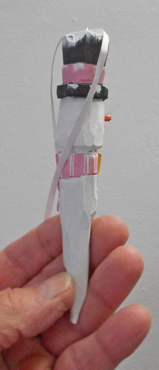 This handmade folk art snowman Christmas tree ornament with scarf is a uniquely designed hand-crafted collectible. A fun little accent for a Christmas tree, holiday wreath or gift package.